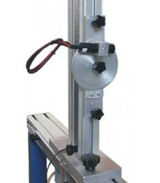 Table for tracking points of impact on the helmets with 3 lasers adjustable in the height and position, sliding headform stand, sliding stand for one laser with reference meters.